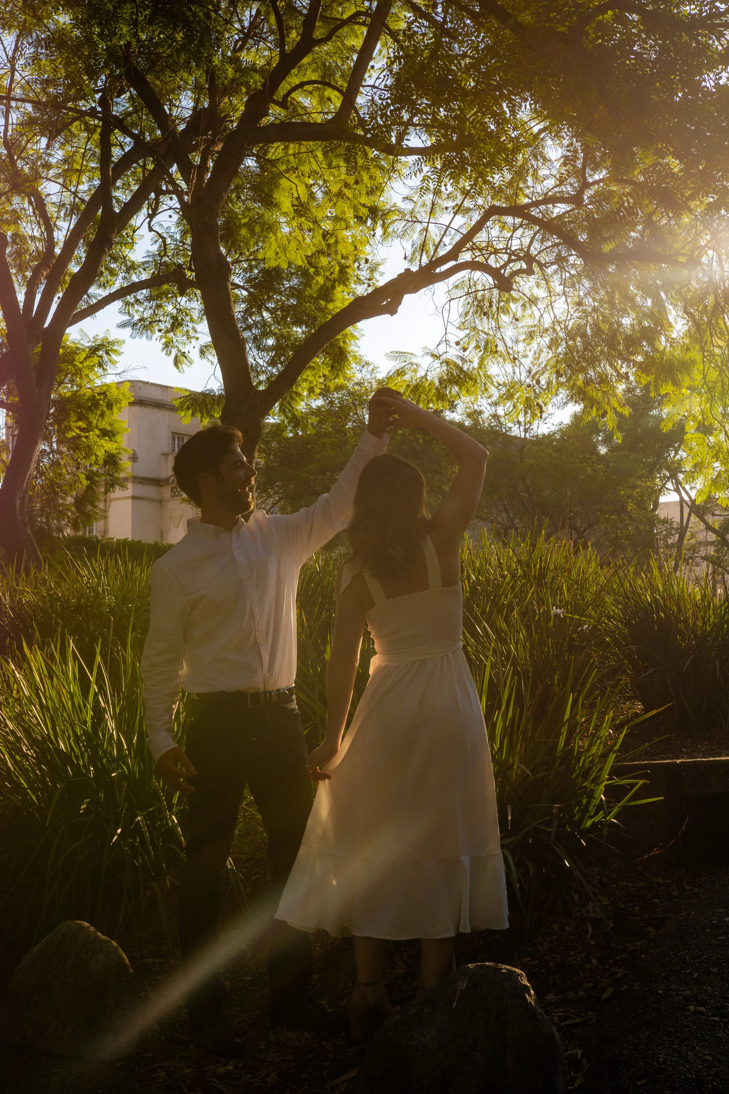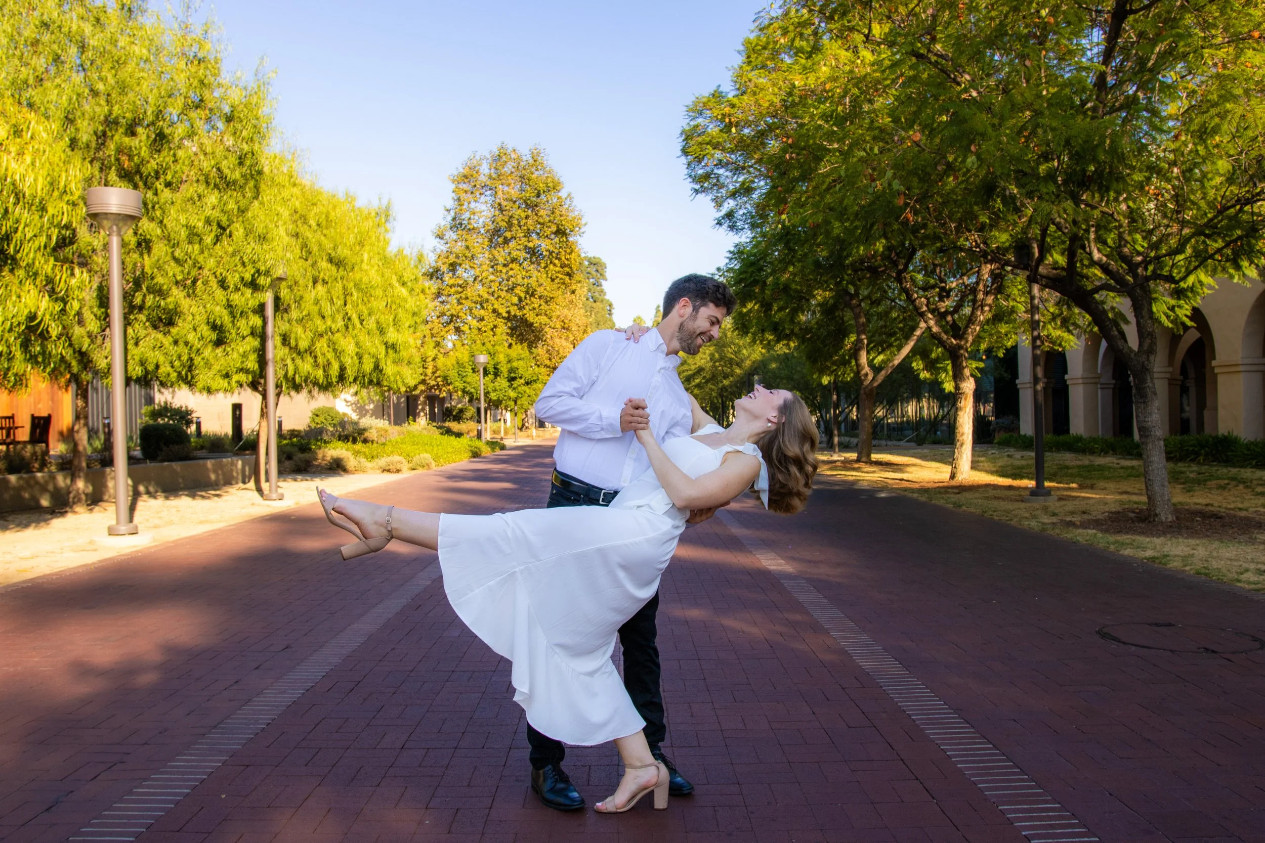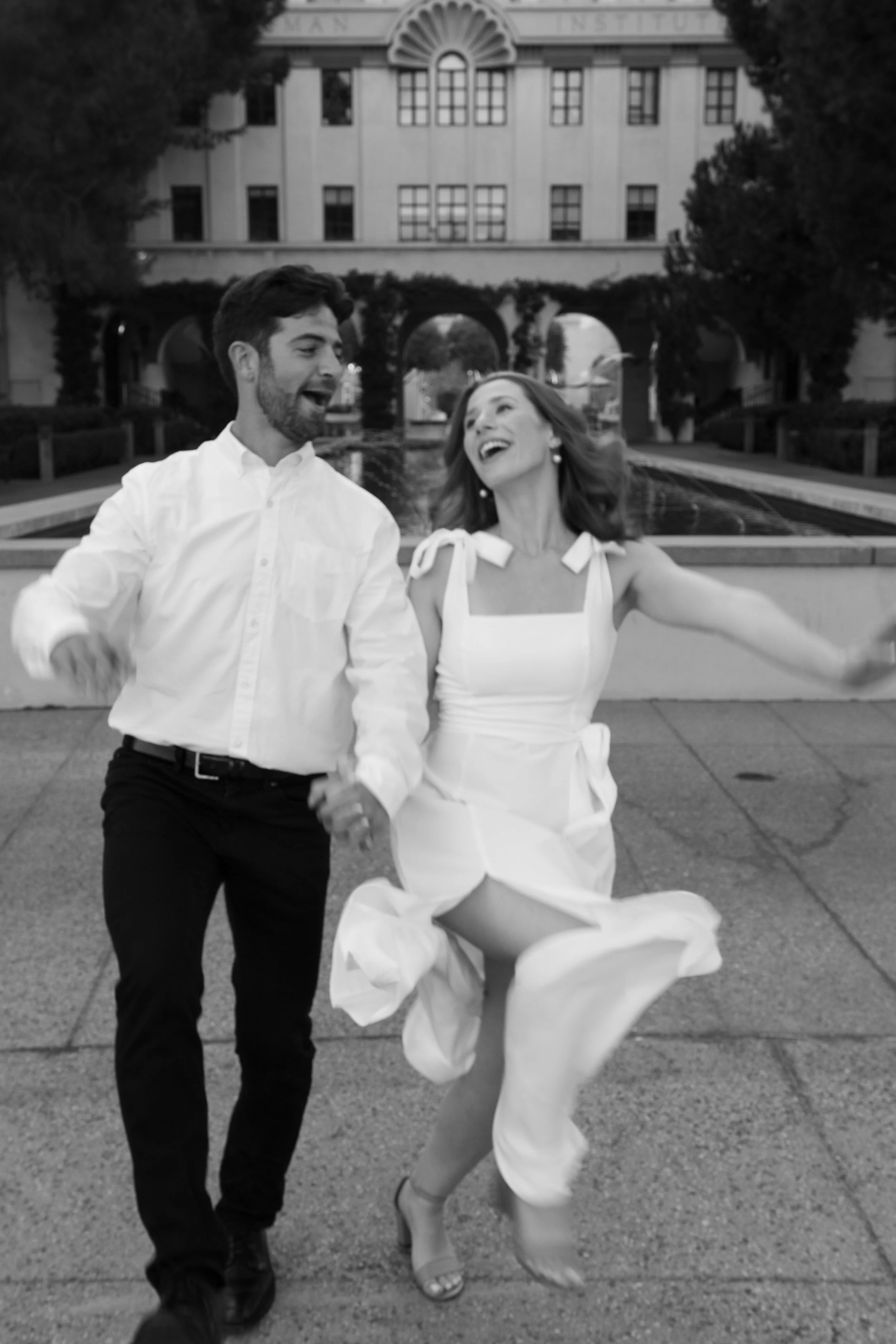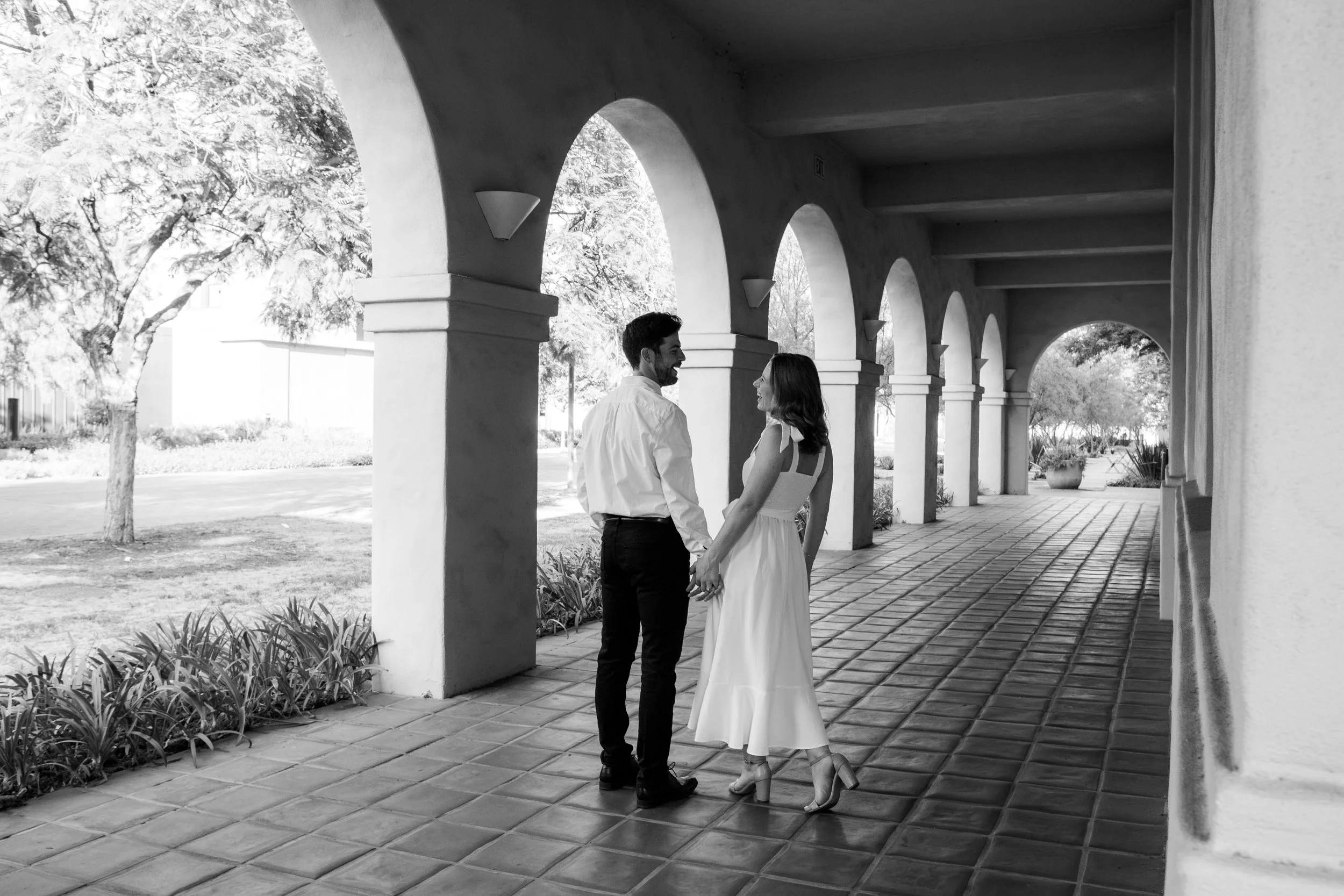 This engagement shoot was a wonderful showcase of Queer love. These two had been engaged for a month and are both basking in the newness of this next step in their relationship. They wanted to play with a simple, sweet and classic vibe. Taken on the beautiful campus of CalTech in Pasadena, California. We danced, we laughed, we kissed. It was everything!